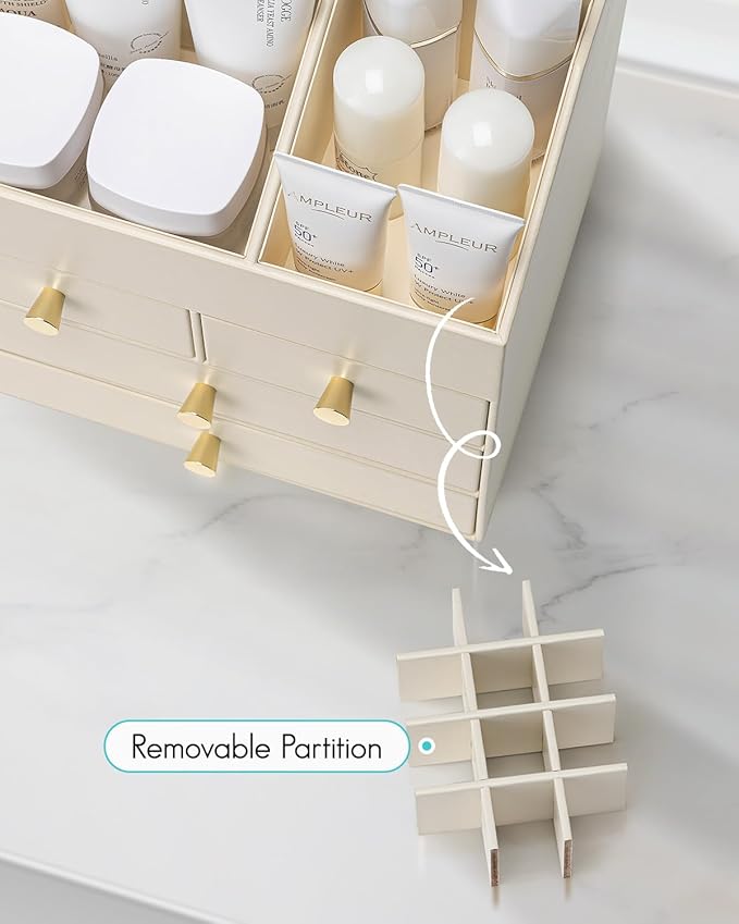 - Durable Makeup Organizer: Made of high quality PU leather, smooth and completely flat. Not easy to stain, and easy to wipe. Each drawer slides out with ease for easy access to your cosmetic. (Do not leave it in a damp place for a long time)