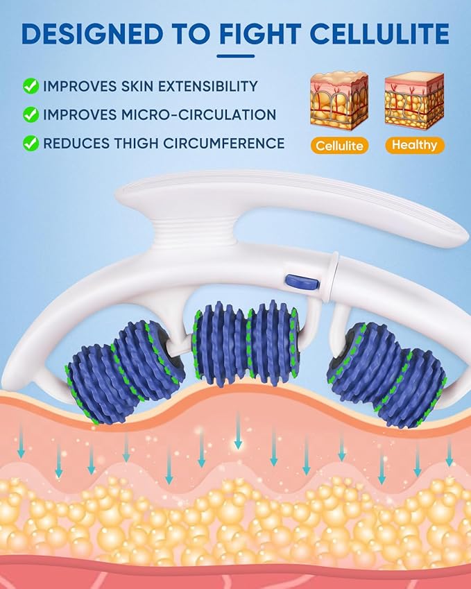 - MAXIMIZE CELLULITE REDUCTION: The 8 independent 360° rollers feature a ribbed teardrop design to maximize results. Surrounding the area with targeted rolling action allows for a deeper massage that destroys cellulite