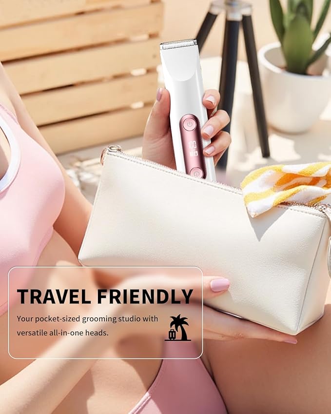 - Rechargeable & Smart LED Display: Enjoy complete cordless freedom with this pubic hair trimmer for women. It features 90-minute quick Type-C charging and provides up to 70 minutes of continuous use. The LED display clearly shows the battery status and travel lock indicator, while the 3-second activation lock prevents accidental startup—making it perfect for weekly grooming or travel.