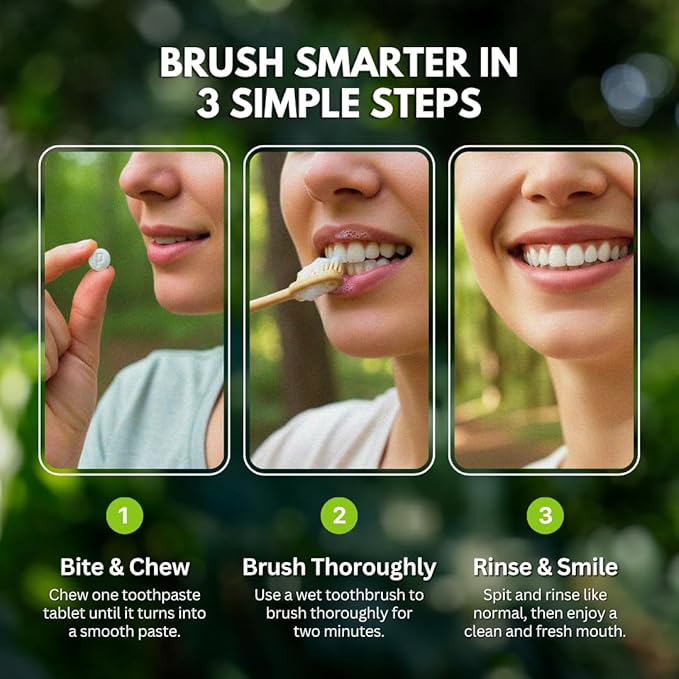 - ONE MONTH SUPPLY: Each jar includes 60 tablets for twice-daily brushing. Consistent protection, zero waste, and a naturally brighter smile.