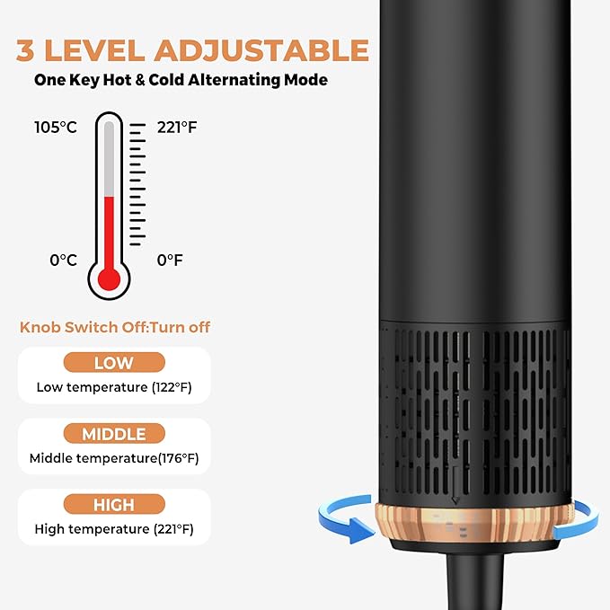 - โฐ Hair Dryer Drush Blow Dryer For All Hair - Blowdryers brush for hair supplies 3 temperature settings to adjust the heat. Magic styler is suitable for different hair types. High: quickly shape for thick & pre-dried hair. Middle: Suitable for long-lasting hairstyles you set. Low: Suitable for fine, soft, damaged & treated hair. The Hair brush blow dryer can effectively dry hair without damaging the hair, and it is flexible to set various hairstyles you want.