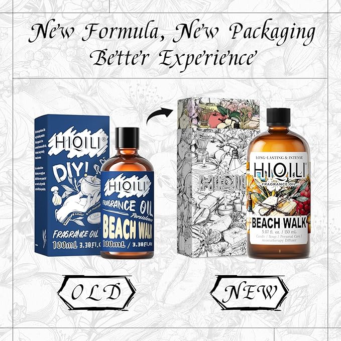 HIQILI Beach Walk Fragrance Oil for Diffuser & Humidifier, Candle & Soap Making, Luxury Hotel Scents, Perfect as a Gift - 5.07 Fl Oz
