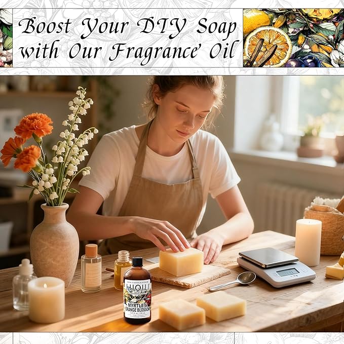 HIQILI Myrtle & Orange Blossom Fragrance Oil for Diffuser, Inspired by D.or Tera-Bella, Candle & Soap Making, Long-Lasting Citrus Floral Scent - 5.07 Fl Oz