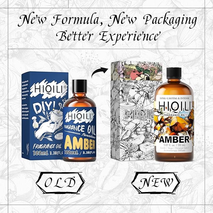 HIQILI Amber Fragrance Oil for Candle, Perfume, Soap Making, Hotel Scents for Essential Oil Diffuser & Aromatherapy - 5.07 Fl Oz