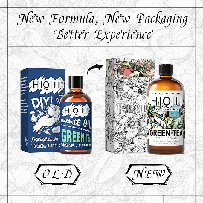 HIQILI Green Tea Fragrance Oil for Candle & Soap Making, Refreshing Scents, for Home Diffusers, Laundry Dryer Balls - 5.07 Fl Oz