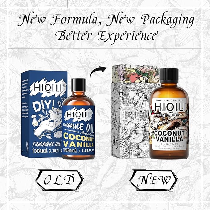 HIQILI Coconut Vanilla Fragrance Oil - for Candle Making, Soap Making, Essential Oil for Diffuser, Humidifier, Home& Hotel & Car Use - 1 Fl Oz
