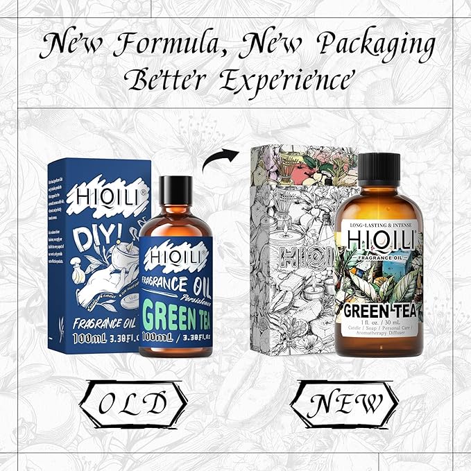 HIQILI Green Tea Fragrance Oil for Candle & Soap Making, Refreshing Scents, for Home Diffusers, Laundry Dryer Balls - 1 Fl Oz