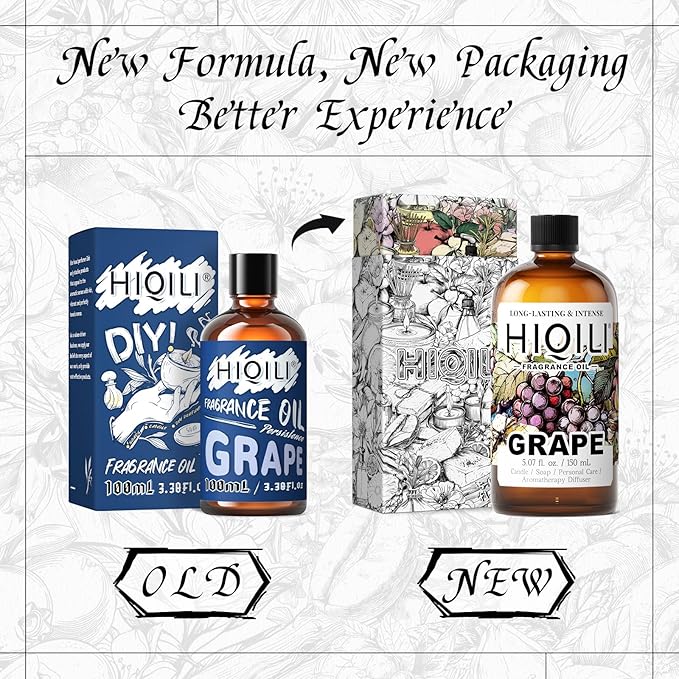 HIQILI Grape Fragrance Oil for Diffuser & Oil Burner, Fruity Scents for Making Candles, Hand Soap, Air Freshener, Long Lasting - 5.07 Fl Oz