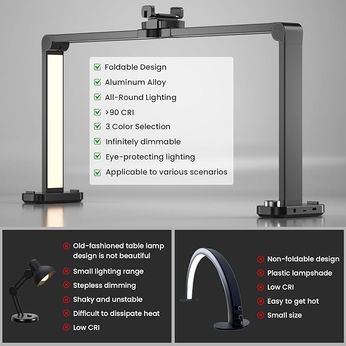 - Ultra-Large Portable Nail Desk Lamp with Ergonomic Workspace Design: This professional nail tech lamp combines space-saving engineering with durability, featuring a foldable aluminum alloy frame (collapsed size: 15"×4.5") that optimizes workspace utilization compared to traditional half-moon designs (28" arc length).Dual-Axis Adjustable Arm:180° vertical tilt for precise curing angles.