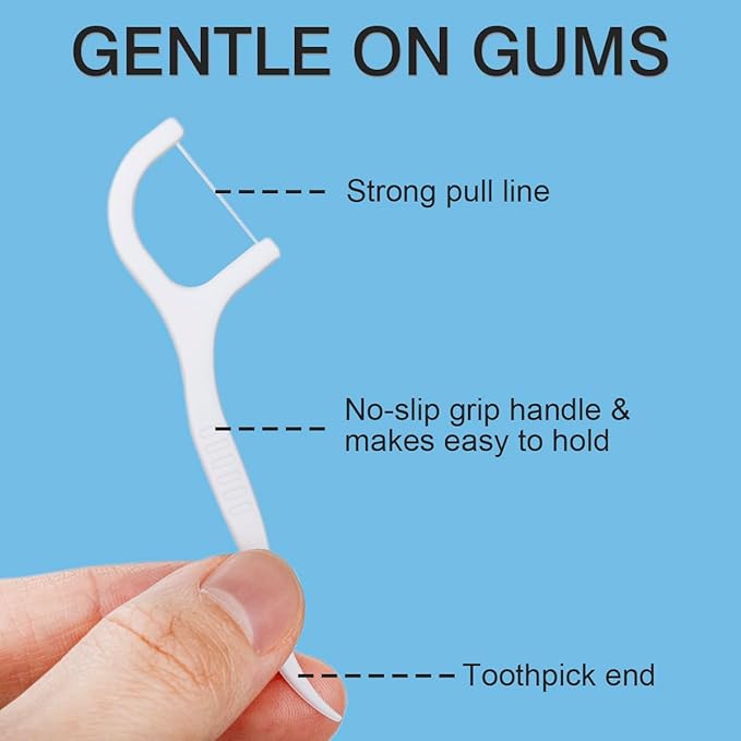 - 【Floss and Built-In Toothpick】Each tooth picks flossers features a dual-purpose design with strong, built-in toothpicks that easily remove stubborn debris and gently massage your gums. This convenient tool helps keep your mouth fresh and clean by tackling hard-to-reach areas for a complete deep cleaning experience.