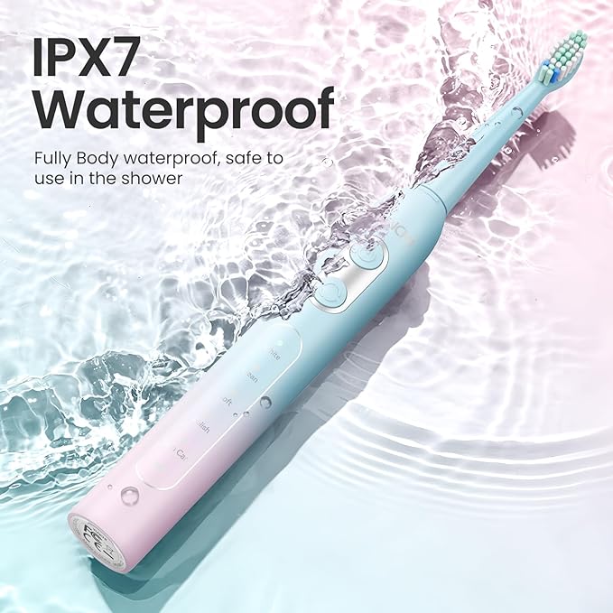 - 【2 MIN Smart Timer & IPX7 Waterproof Design】 Built-in 2-minute smart timer with 30-second zone reminders ensures you follow dentist-recommended brushing habits. The IPX7 waterproof body makes it safe to use in the shower and easy to rinse after every use—perfect for your daily routine.