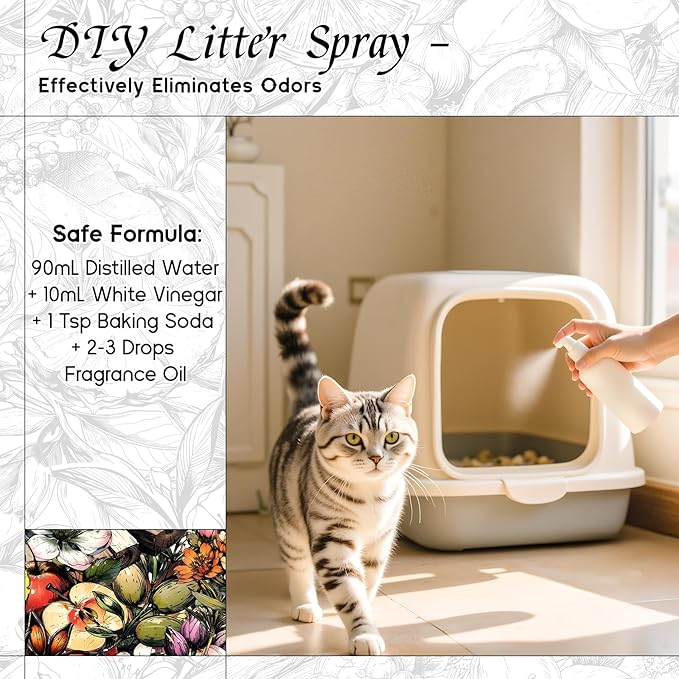 - Pet-Friendly: A few drops mixed with water in a spray bottle effectively neutralizes odors from litter boxes, leaving a fresh, clean scent that's gentle on your pet's senses