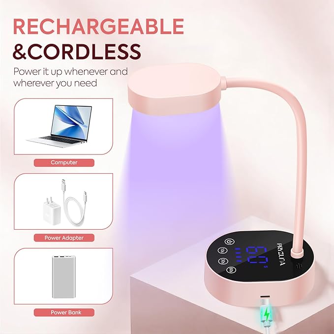 - Flexible Gooseneck & Compact Design: 360° bendable gooseneck lets you adjust the lamp angle and height freely. This mini UV light for nails is lightweight and portable—perfect for precise curing at home or in the salon. The stable base ensures hands-free convenience.