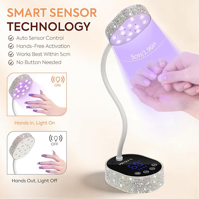- Perfect Gift for Nail Lovers: Whether you choose the solid color style or the dazzling diamond edition, this goose neck UV lamp is not just functional—it’s stylish too. A unique gift idea for gel x fans, press-on nail lovers, or nail art beginners and pros alike.