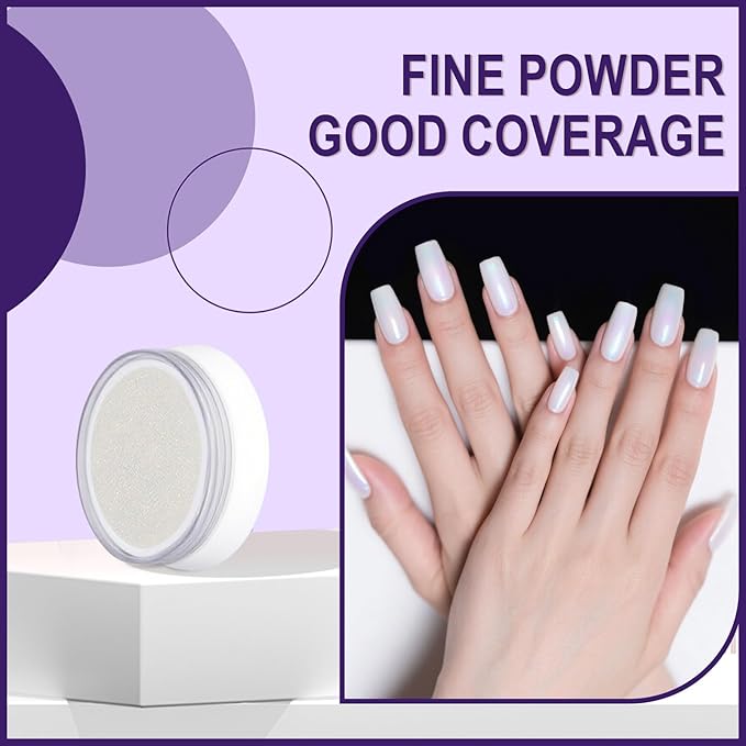 Artdone Chrome Nail Powder Magic White Pearl Kit Mirror Effect Silver Metallic Holographic Dip Nail Powder For Resin Craft & Nail Art Decoration