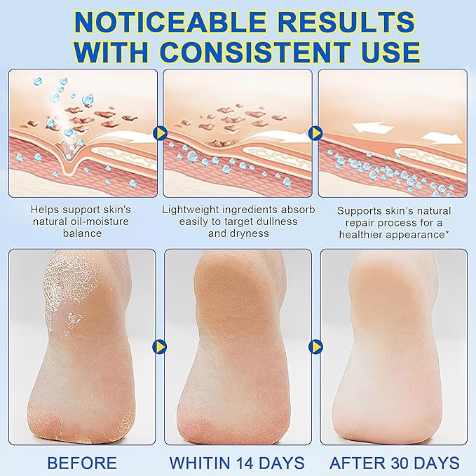 - 【Multi-Purpose Repair】Highly effective foot cream for dry cracked heels and feet targets dry, cracked, and thickened skin on feet, heels, hands, ankles, elbows, legs, toenails, and knees. One tube solves multiple problems, making it ideal for daily care, post-workout treatment, or preventing high-heel blisters.