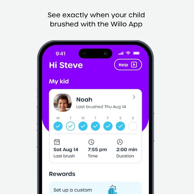 - The Willo App Keeps Everyone in Sync: Kids stay motivated with fun timers and rewards, while parents can track brushing, set reminders, and celebrate wins—turning “Did you brush?” into “Awesome job!”
