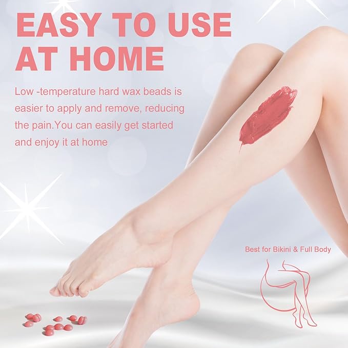 - Stripless, Easy To Use For All Body And Bikini: Experience home waxing beads for hair removal without going to a professional salon.Wax for private area for women heat up quickly, easy to use and remove. The whole process is smooth, making every minute of your time worth it. No strips needed, even beginners can quickly master the efficient and convenient hair removal experience, and achieve smooth skin results for weeks. Make smooth skin a part of your daily life