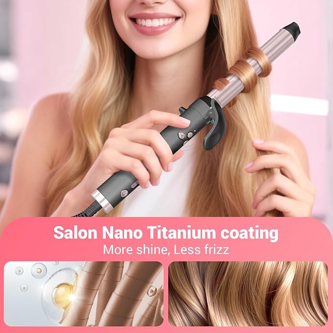 - Auto-Rotating Curling Iron – Simply clamp and hold; the barrel automatically rotates to create effortless, salon-quality waves.