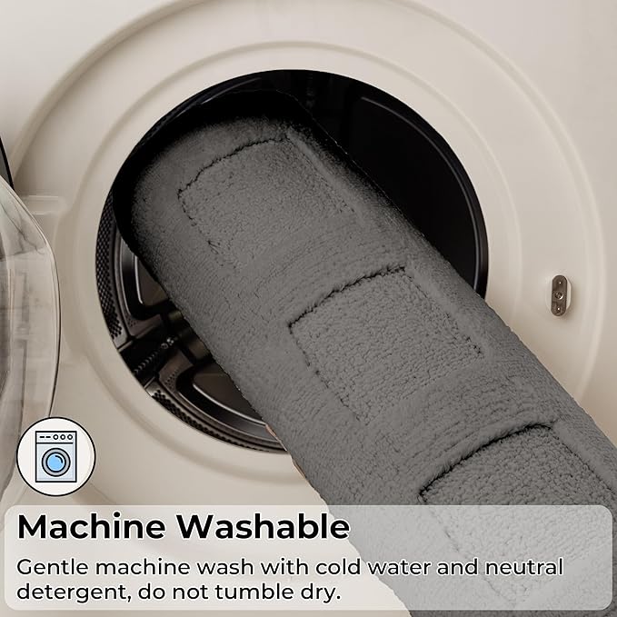 - Washable & Quick Dry: Machine washable and quick drying, this microfiber bathroom rug resists wear and keeps its plush look over time. Simple care ensures it stays fresh for daily routines and deep cleans alike.