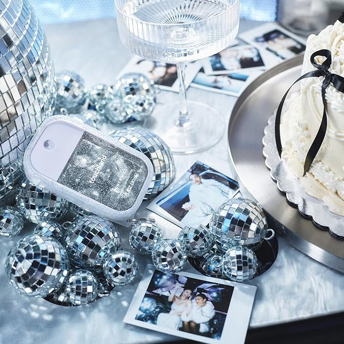 - SPARKLY BAG CHARM: The Frosted Sparkle Mist Case shines with a silver-glitter finish and sleek metal keyring. Whether clipped to your bag or shimmering on your keys, this bag charm is designed to bring a touch of sparkle wherever you go.