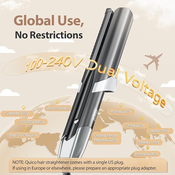 - Universal Dual Voltage: With a 100V-240V design, it eliminates the need for a separate power adapter during international travel. Air hair straightener set includes 2 hair clips and 1 piece of glove, ensuring safe and convenient styling to meet all your hairstyling needs.