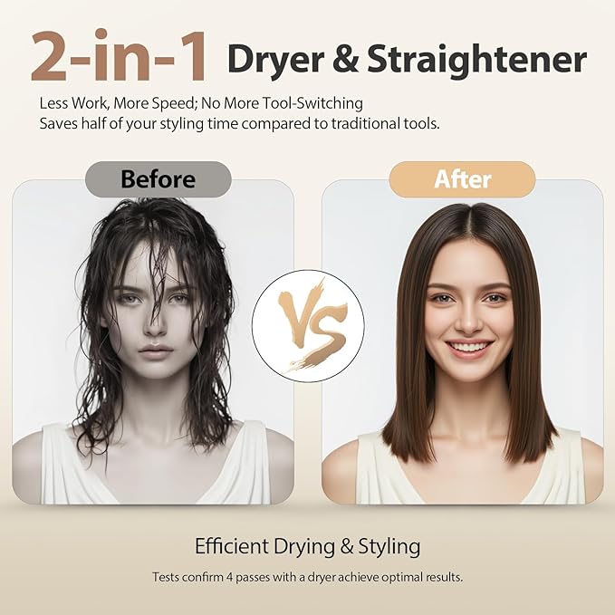 - Time-Saving 2-in-1 Airflow Straightener: Combines straightening and blow-drying functions to cut your styling time in half. One tool lets you blow-dry and straighten wet or dry hair simultaneously, eliminating the rush of morning routines and travel.