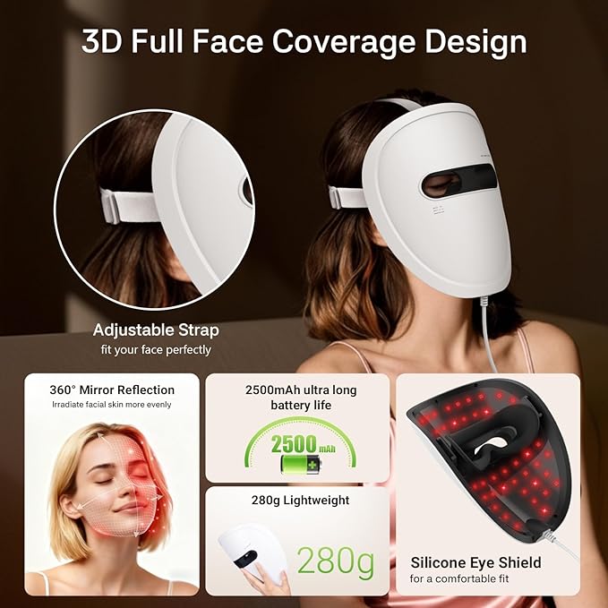 - Safe and Convenient: This red light therapy mask simplifies the complex operation of the salon with a simple one-button control function, so you can enjoy the salon-like skincare effect at home! The innovative soft silicone eye mask is used to protect your eyes, and the comfortable and lightweight material makes you enjoy the whole treatment process.