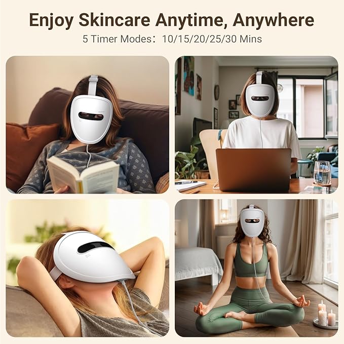 - Ultra-long Battery Life & Timing:This LED face mask is equipped with a 2500 mAh remote control, which can work continuously for up to 150 minutes. The timed remote control has 10/15/20/25/30 -5 time periods to choose from. The system defaults to 10 minutes; short press the time button to adjust the timing time. The device will automatically turn off when the timing ends. Allowing you to do skincare anytime, anywhere, without appointments, saving your time and money.