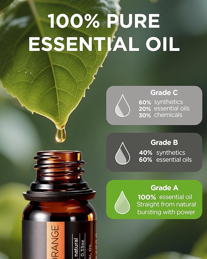 - 8 Essential Oils Available: It includes peppermint, orange, lavender, tea tree, rosemary, eucalyptus, lemongrass, and ylang ylang, 100% pure and natural and 10ml for each bottle. Select one scent and use with the diffuser to fill your space with moisture and fragrance, freshen your breathing and relax your mind. With a nice package, this aromatherapy diffuser and 8 scents essential oil set is a great gift idea for any holiday.