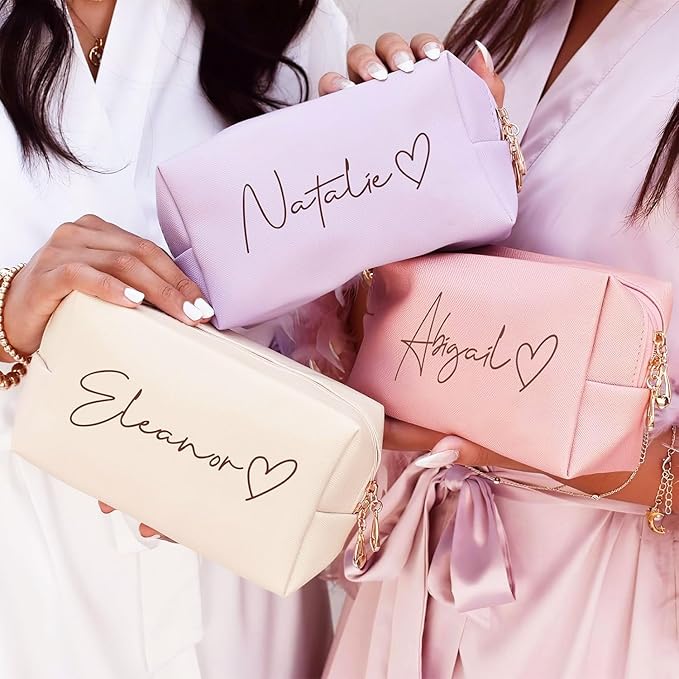 - FAST PERSONALIZED BAGS IN 24H: Custom name travel makeup bag, to surprise your friends as bridesmaid proposal gift, bachelorette party favors, or best friend present, Bridal Shower Gifts, party favors, and vacation essentials.