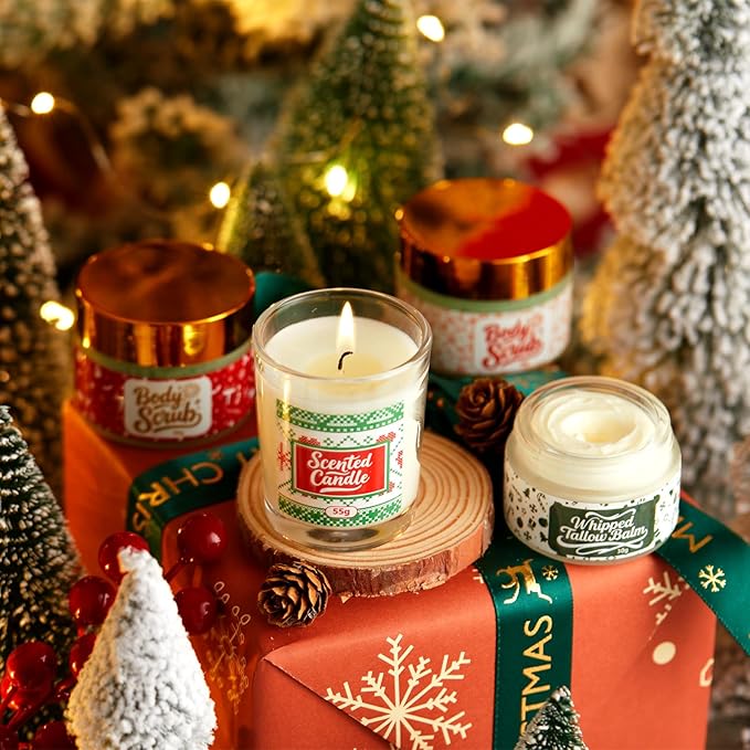 - 24 DAYS OF BEAUTY & JOY IN ONE BOX: This all-in-one beauty calendar includes shower gel, hair conditioner, hand cream, foot cream, body lotion, bath salt, hair oil, beef tallow cream, body scrub, handmade soap, shower steamer, bath bomb, scented candle, hair clip, ornament ball, santa hat, christmas glasses, christmas bell, hanging ornament, stocking, keychain and Mini Christmas tree. With 24 carefully selected items, it’s a magical daily unboxing experience that turns every morning into a mini celebration.