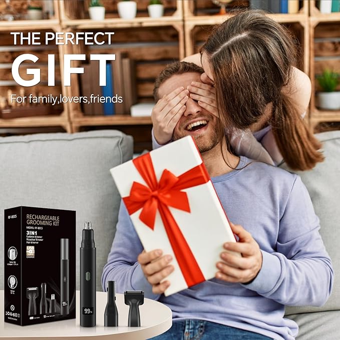 - 【Professional 3-in-1 Grooming Kit for Men & Women】 Engineered for complete facial maintenance, this kit features a Dual-Use Head for safe nose and ear hair trimming, plus 2 specialized attachments for precise eyebrow shaping and sideburn detailing. One compact, powerful device replaces multiple tools, delivering a perfectly groomed look with unmatched ease and precision.