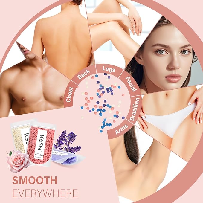 KeShi Waxing Kit, Painless Hair Removal Wax Warmer with 6 Bags Hard WaxBeans for Full Body, Legs, Face, Eyebrows & Bikini— Ideal for Both Women & Men(Blush)