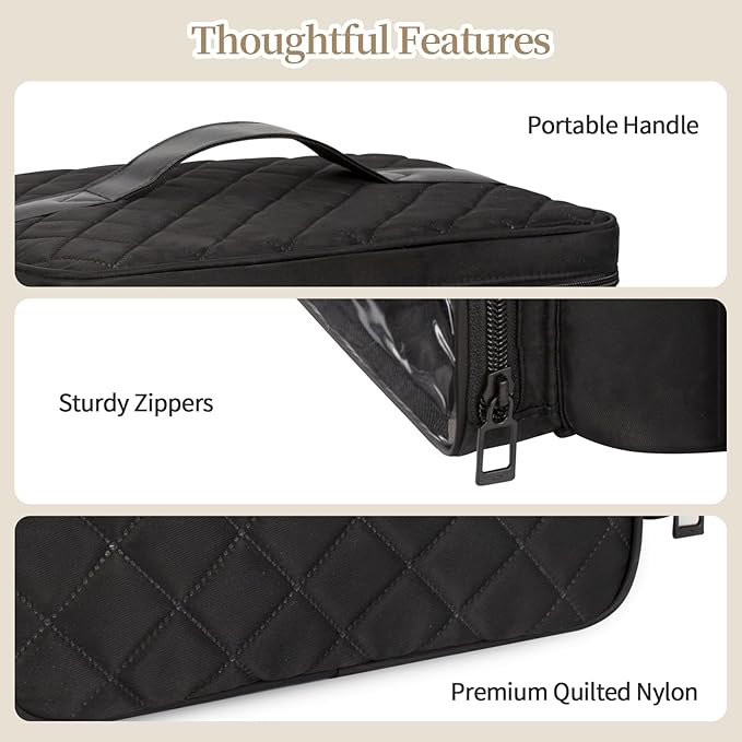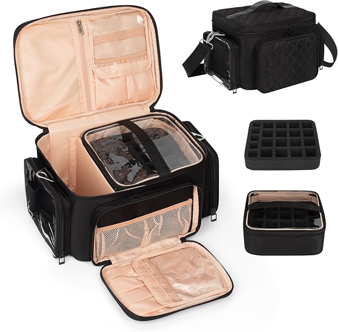 - 【Quality and Versatile】Our nail organizer is made of 5 layers of materials, the quilted nylon face material and polyester lining are both high-density, sturdy and durable for years of use. There is a separate nail storage bag inside and the middle divider is removable, so it can not only be used as a nail organizer and storage item, but also as a cosmetic bag or essential oil bag.