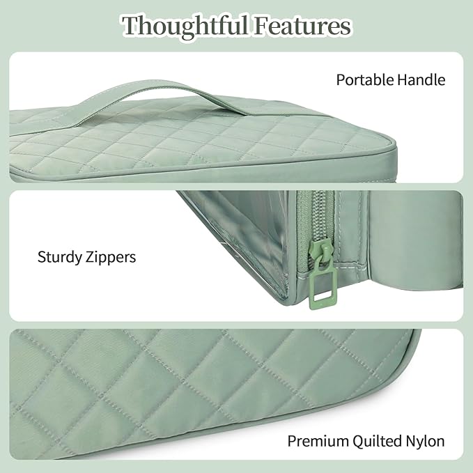 - 【Quality and Versatile】Our nail organizer is made of 5 layers of materials, the quilted nylon face material and polyester lining are both high-density, sturdy and durable for years of use. There is a separate nail storage bag inside and the middle divider is removable, so it can not only be used as a nail organizer and storage item, but also as a cosmetic bag or essential oil bag.