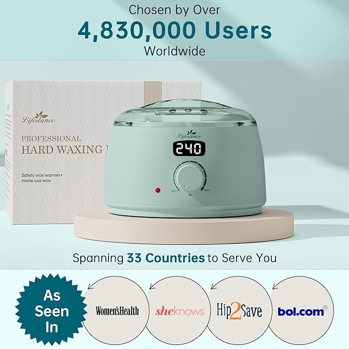 - Swift Ready & Exact Temperature Tuning: Lifestance waxing kit's upgraded heating program melts 3.5oz (100g) of wax beads in just 10-15 minutes. No more endless waiting! Its LED display provides precise, constant temperature, helping wax beads stay melted and sticky throughout your entire waxing session