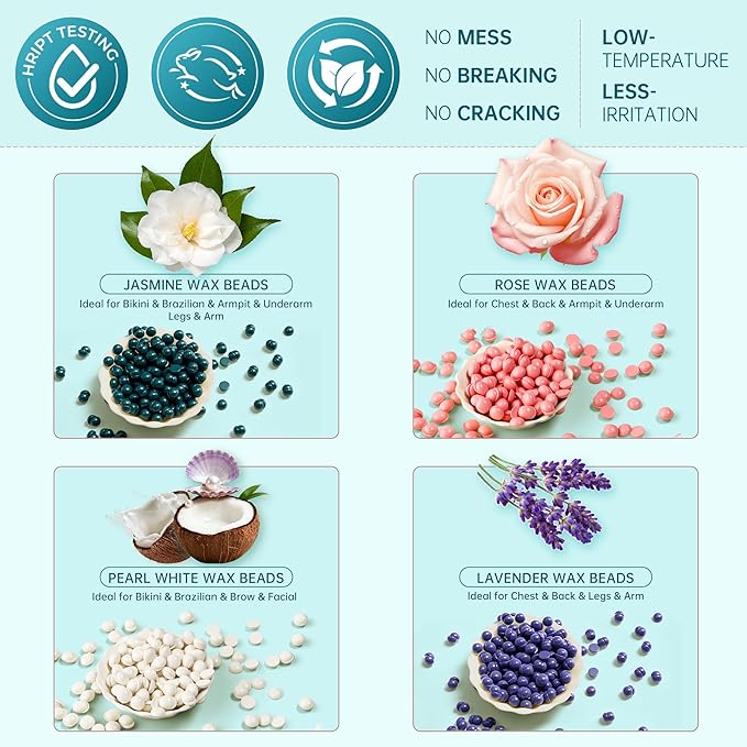 - Gentle on Skin, Tough on Hair: Enjoy a soothing waxing experience with Lifestance’s HRIPT-certified wax beads—crafted from premium natural ingredients like jasmine/rose/lavender/coconut extract, and so on. Perfect for sensitive skin! Our hair removal wax kit also includes pre & post wax treatment oil spray to pamper your skin. Say goodbye to irritation and hello to smooth, cared-for skin with every use