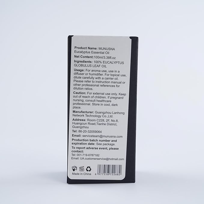 - MUNUSNA Eucalyptus Essential Oil: Fresh, Cool, Woody, Slightly fruity. 100% natural eucalyptus essential oils extracted from leaves by steam distillation, undiluted, no additives, no fillers, which will provide you with a natural strong, herbaceous, aromatic aroma.
