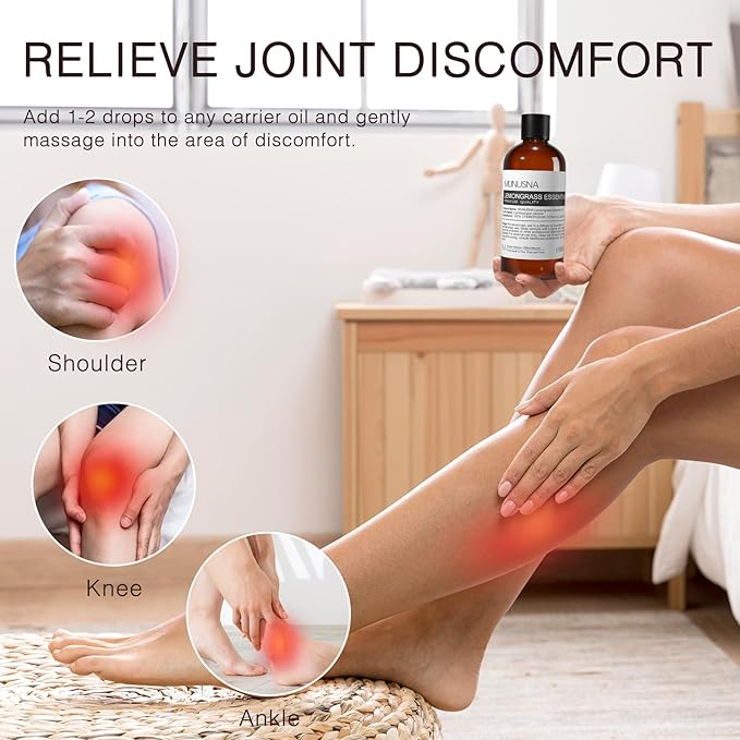 - Lemongrass Oil for Skin Care: Lemongrass oil is a great choice for skin issues. It may help boost circulation and relieve sore muscles and joints. Mixing 1-2 drops of lemongrass oil with a carrier oil, cream, or lotion can help your skin appear healthier and more youthful! Additionally, blend lemongrass oil with massage oil for a full-body massage, or add lemongrass essential oil to your bathwater to fully relax your body and relieve fatigue through a warm soak. This method is particularly ideal for fitness enthusiasts or those who love sports