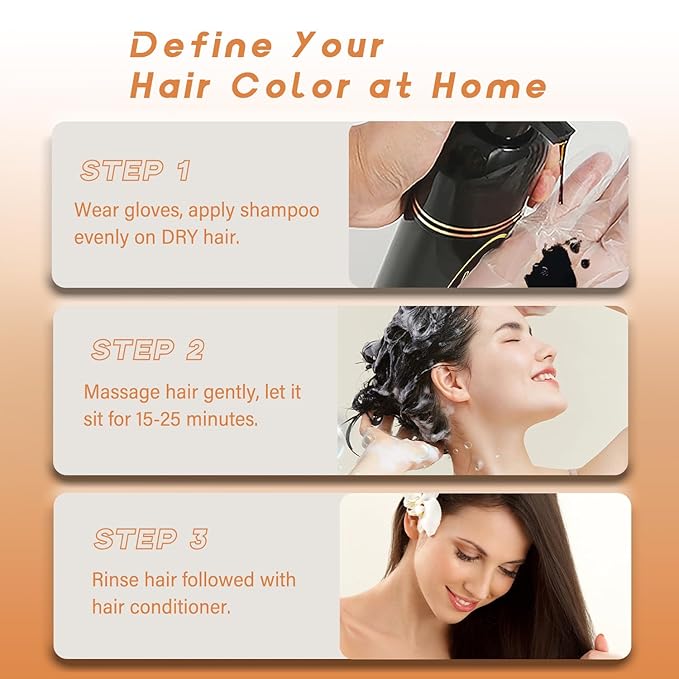 - [3-IN-1 Brown Hair Dye] Unlike other traditional hair dye kit, this brown shampoo hair dye 3 in 1 contains no harsh chemicals, blonde shampoo combines brown hair dye, shampoo, and hair conditioner all at once! Simplifies your hair dyeing routine! The shampoo for color treated hair will soothe your scalp, and maintain overall vigor.
