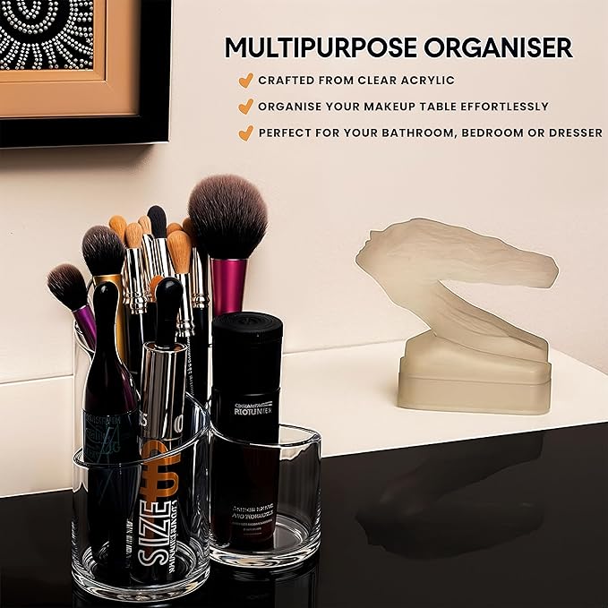 - Quick & Effortless Access : The clear acrylic cup design keeps contents visible at a glance. Easily grab your makeup brushes, pens, or hairbrush organizers without rummaging through drawers.