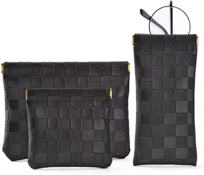 - This set includes two pouches for purse and a soft glasses case. The larger cosmetic bag can also be used to store jewelry, electronic accessories, etc. while the small pouch is thoughtfully sized for on-the-go touch-ups