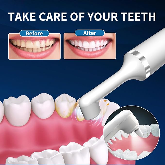 Plaque or Electric Tartar Polishing TeethKit with LED Light 5 Speed Modes with 5 Replacement Brush Heads (White)