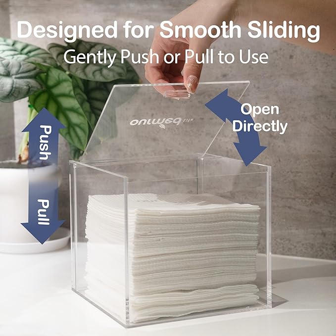 - 【 Moisture-Resistant Protection 】The acrylic face towel box shields disposable washcloths from bathroom humidity, keeping clean facial towels for face use always dry and dust-free