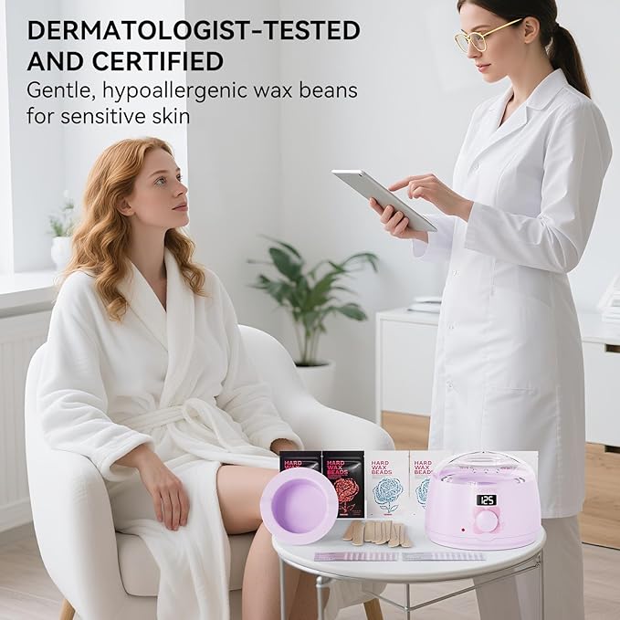 Digital Wax Warmer - Beginner-Friendly Waxing Kit with Smart Temp Control, 6 Packs (3 Colors) Wax Beads for Targeted Hair Removal - Ideal for Body, Bikini, face, Home Salon Use