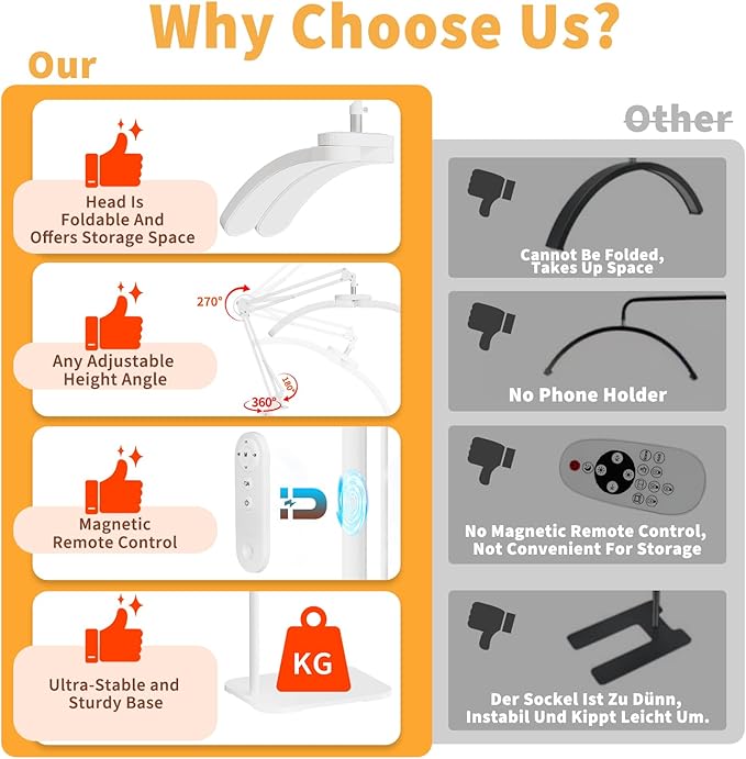 - 【Widely Used & 24/7 Customer Service】The half-moon beautician lamp is ideal for facials, eyelash extensions, spa treatments, makeup, salon work, reading, crafts, and soldering. Its stylish design complements any space. For questions, contact us via Amazon Message for a solution within 24 hours.