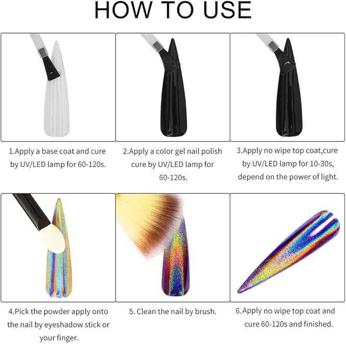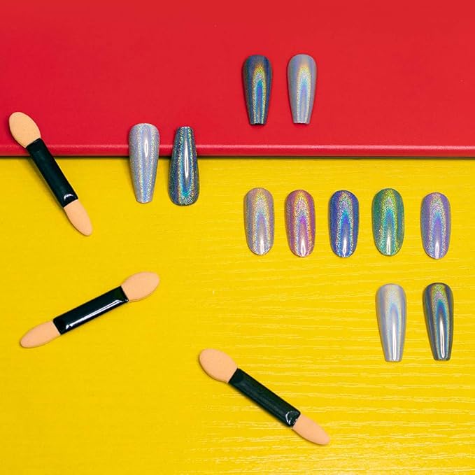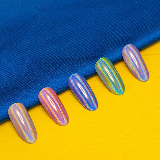 - PACKAGE CONTENTS: 3 jars different size holo powder, It needs to be used with gel nail polish and no wipe top coat. They can make many different design for your gel nail polish. It gives different color base a pearly shine for your nails