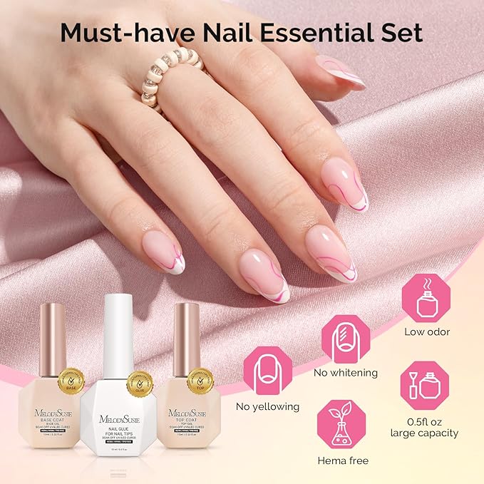 - HEALTHY AND SAFE FORMULA: MelodySusie upgraded set is HEMA-free,non-yellowing and low odor.This formula is friendly to those with sensitive skin.It does not contain irritating ingredients or adhesives that cause nail damage.This product is free from HEMA,but other ingredients may still cause allergies