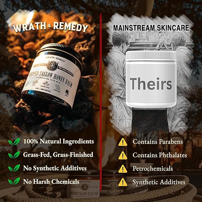 - ๐ง SKINCARE, AS GRANDMA INTENDED: Experience the charm of traditional skincare with our whipped tallow honey balm. Like grandma's time-tested method, this balm uses rendered beef fat to deliver powerful moisturizing and soothing benefits. Our contemporary whipped balm offers a luxurious touch that honors the past